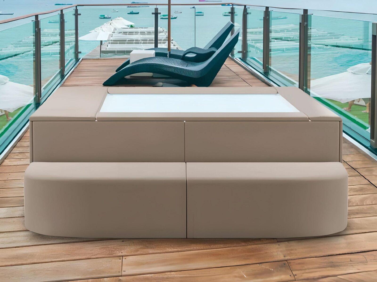 La minipiscina Sublime Comfort Tepore , con le sue dimensioni di 245 x 327 cm, è l’essenza del relax condiviso, arricchito dal calore avvolgente dell’acqua riscaldata.