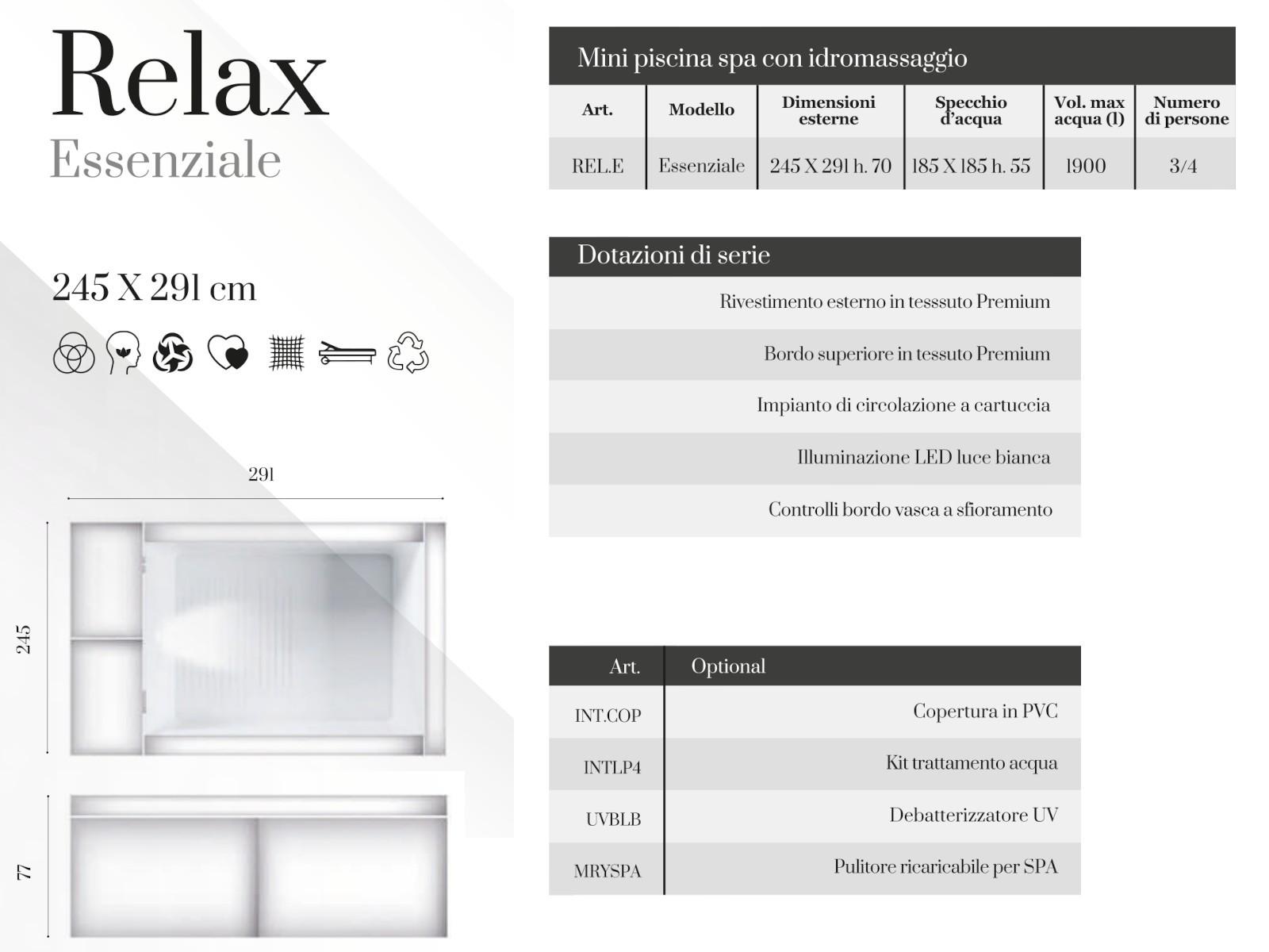 La Minipiscina Sublime Relax Essenziale , dimensioni 245×291 cm , incarna l’arte di godersi e più piacevoli momenti in compagnia.