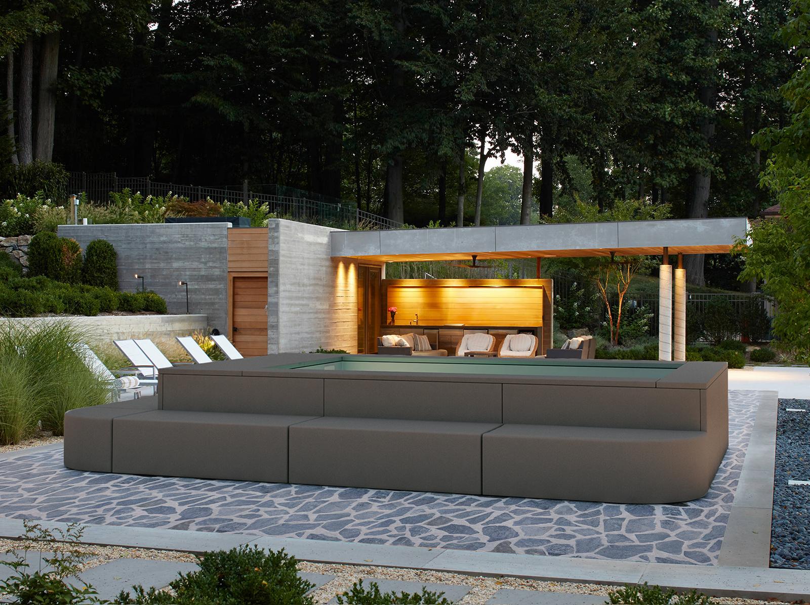 Dal design robusto e raffinato, questa piscina arreda con eleganza terrazze e giardini, aggiungendo un tocco di stile e buon gusto a qualsiasi ambiente. Pensata per chi sogna feste esclusive e rilassanti , Space si trasforma, con l’aggiunta di divani modulari, in un’area iconica e accogliente: un angolo di benessere quotidiano, un rifugio sicuro in cui tornare per rigenerarsi. La massima espressione dell’arredo wellness.